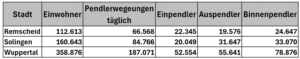 Pendlerbewegungen in den Bergischen Städten. Quelle: Pendleratlas Deutschland 2025